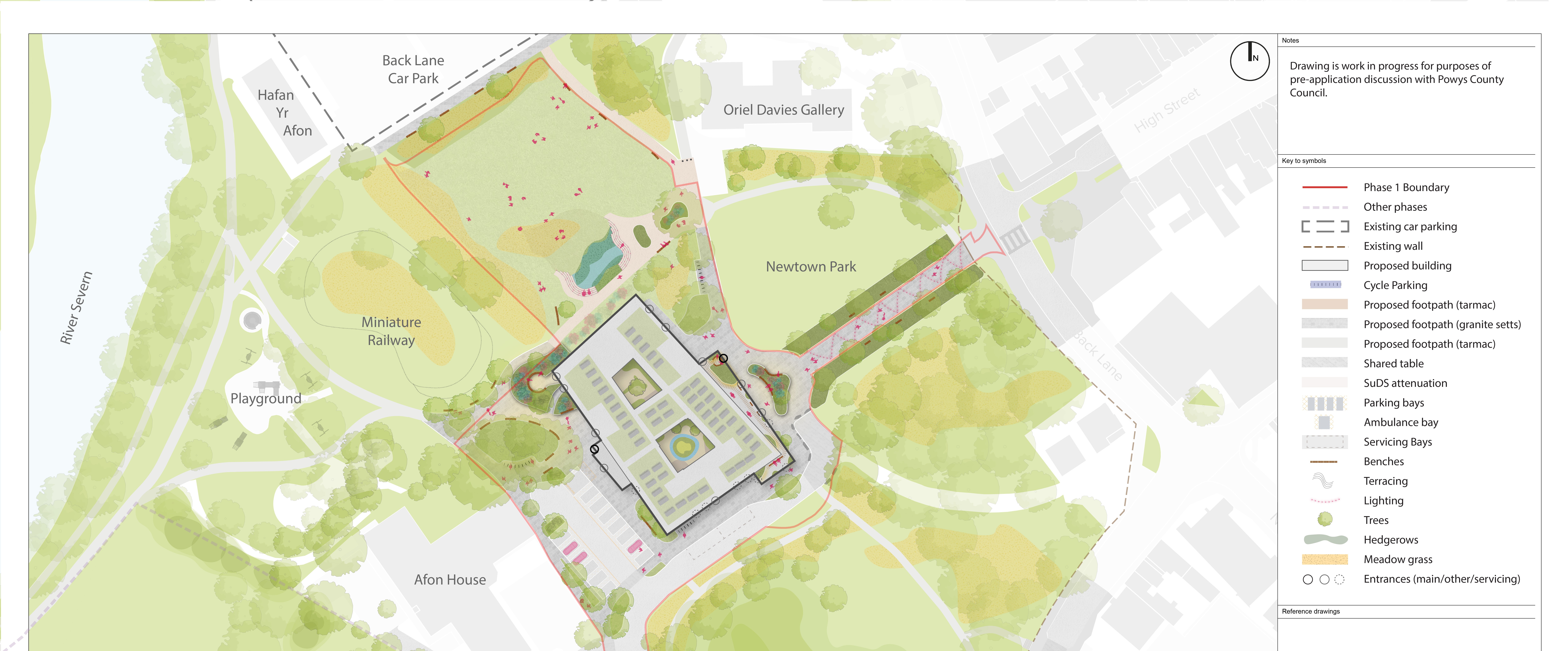 Bydd tîm o'r bartneriaeth – Rhaglen Lles Gogledd Powys – yn cynnal sesiynau galw heibio cyhoeddus (gweler y dyddiadau ar y dde) i drafod y cynigion ar gyfer yr hyn iechyd a lles. Darperir rhai delweddau o sut olwg allai fod ar y safle isod hefyd.