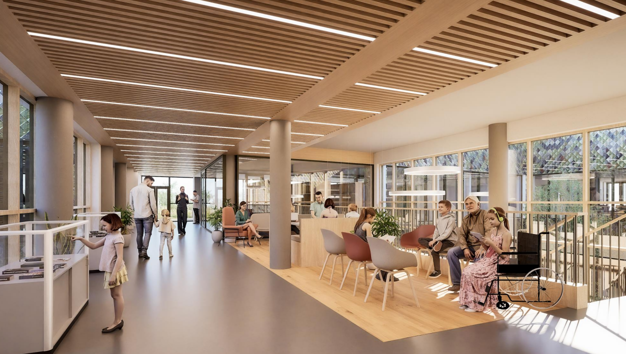 Ewch i’n gofod cymunedol a lles gyda lluniaeth. Bydd hefyd gennych fynediad at wasanaethau gofal sylfaenol mewn amgylchedd o’r radd flaenaf.